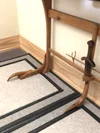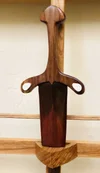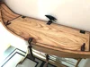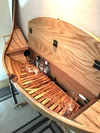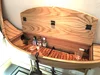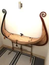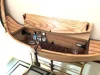 Red oak planking over laminated white oak keel. Carving highlights are walnut, cherry, koa and ebony. Wall mounted or free standing on its base. Measurements are 6’-6”x 4’ ht. On base it’s 6’ tall.