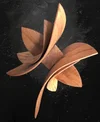 Red oak planking over laminated white oak keel. Carving highlights are walnut, cherry, koa and ebony. Wall mounted or free standing on its base. Measurements are 6’-6”x 4’ ht. On base it’s 6’ tall.